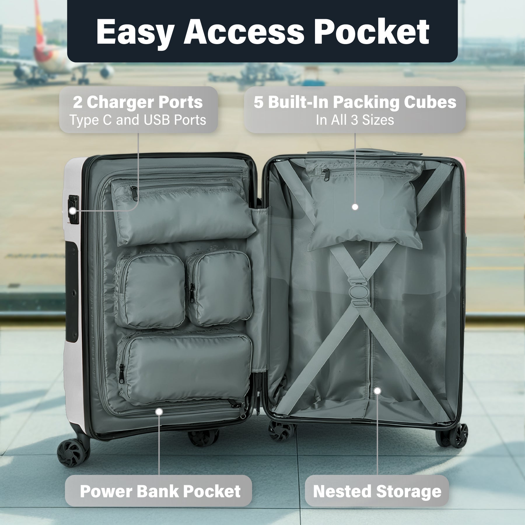 - New TSA lock placement for convenient access