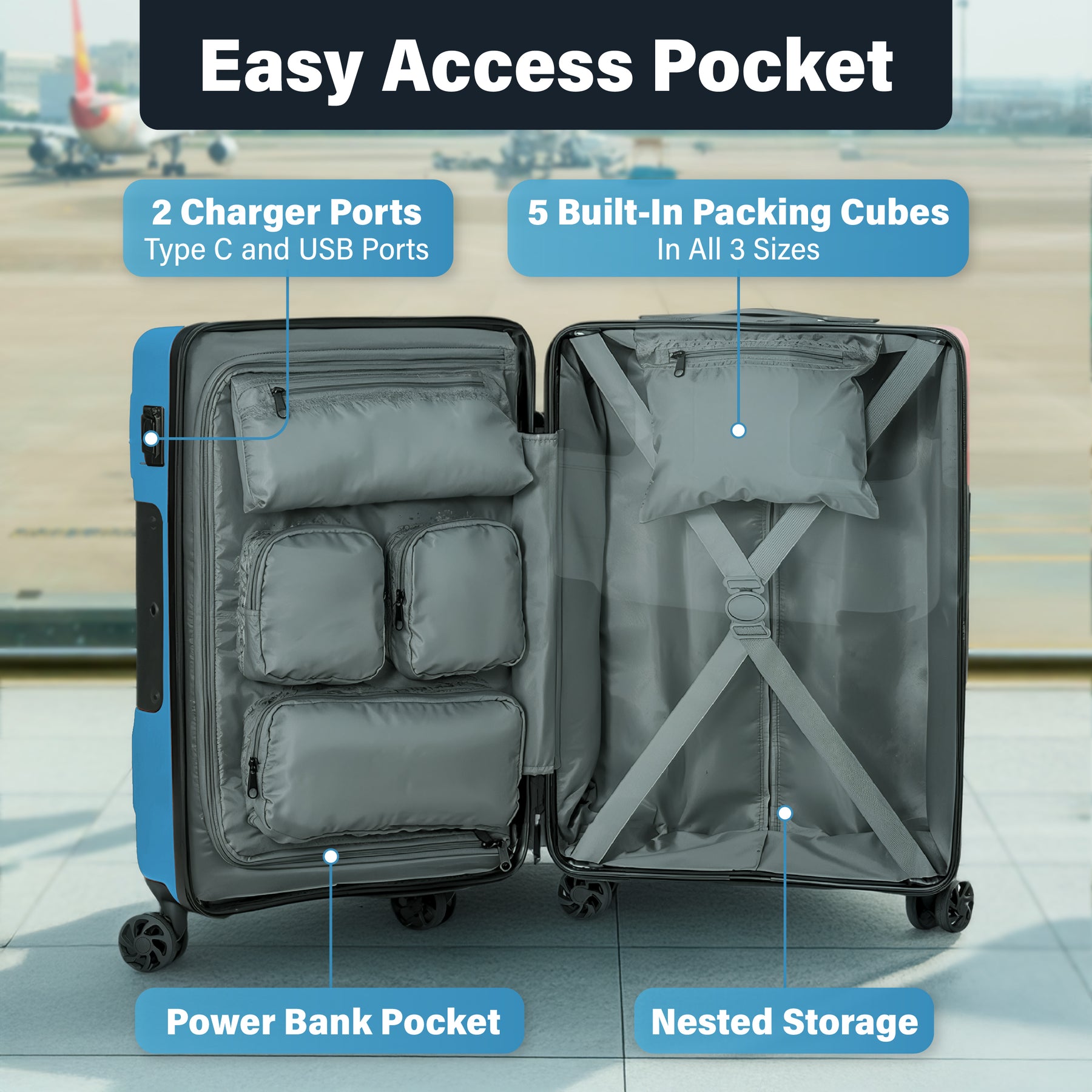 TACH V3.1 is our latest and greatest design. These updates are directly related to years of feedback from our loyal connectable luggage following.